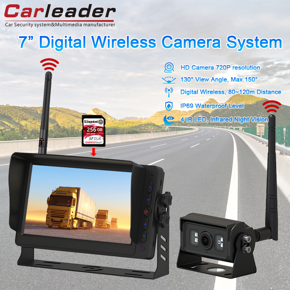 CarleaderRegistrazione DVR da 7 pollici Sistema di monitoraggio wireless digitale a 2,4 GHzè un all'avanguardiaMonitoraggio wireless e sistema di telecamereProgettato per veicoli commerciali, tra cui autobus, camion, rimorchi e gru. Combinando imaging ad alta risoluzione, solida durata e connettività versatile, questo sistema garantisce una maggiore sicurezza e visibilità in ambienti esigenti.