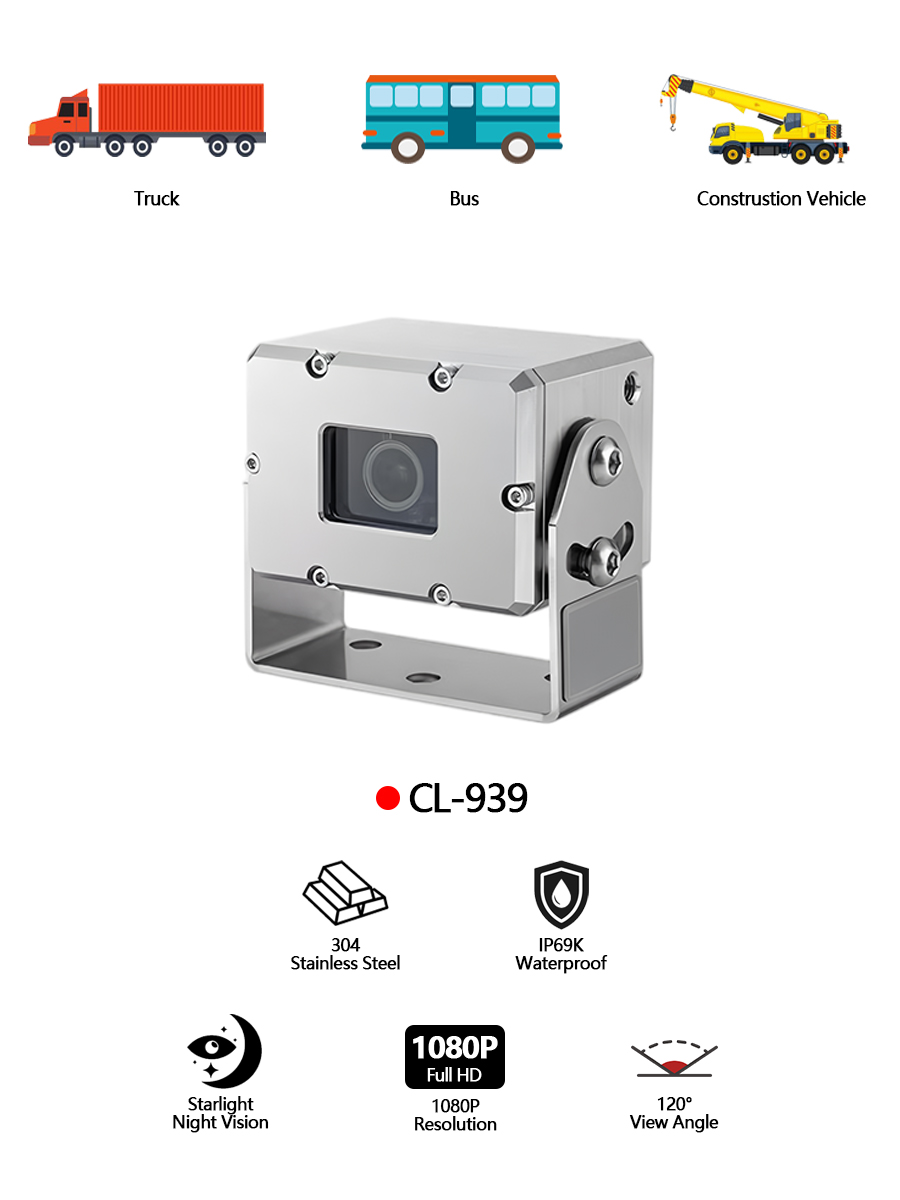 Carleader304 fotocamera pesante in acciaio inossidabile in acciaio inossidabileIdeale per veicoli pesanti, camion commerciali, ambienti marini, veicoli chimici e qualsiasi applicazione di veicoli che richiede una soluzione di sorveglianza robusta e resistente alle intemperie.