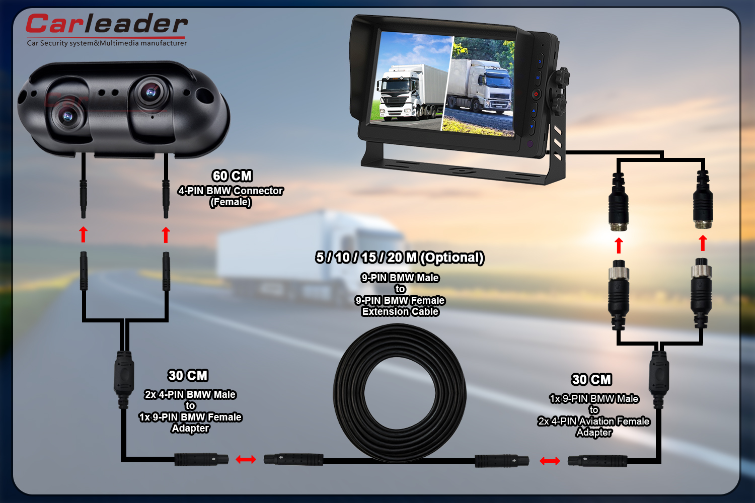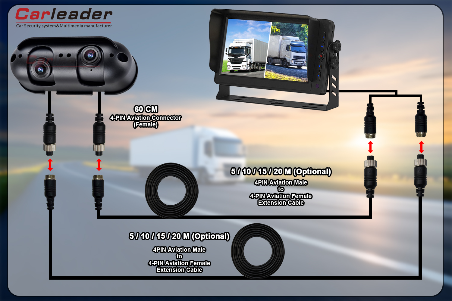 Capocarrooffrirà due diverse soluzioni di cablaggio per la telecamera di retromarcia per carichi pesanti Starlight AHD Dual Lens, per soddisfare le diverse esigenze di cablaggio:
