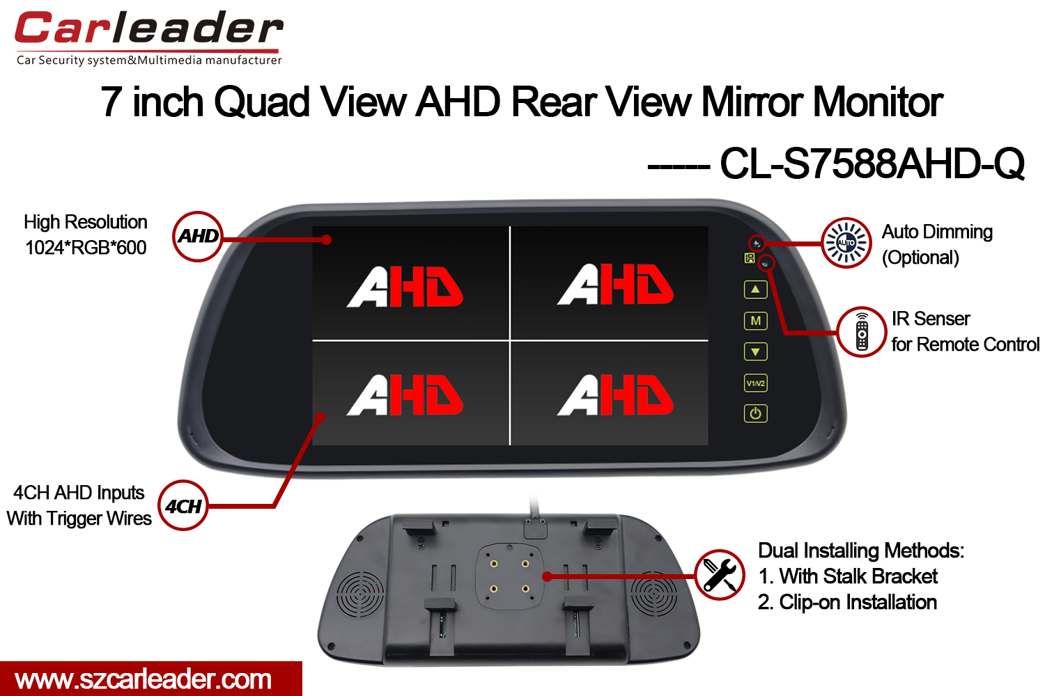 Perché scegliereCapocarro7 pollici 4CH Quad AHD Supporto per monitor specchietto retrovisore Doppia installazione?