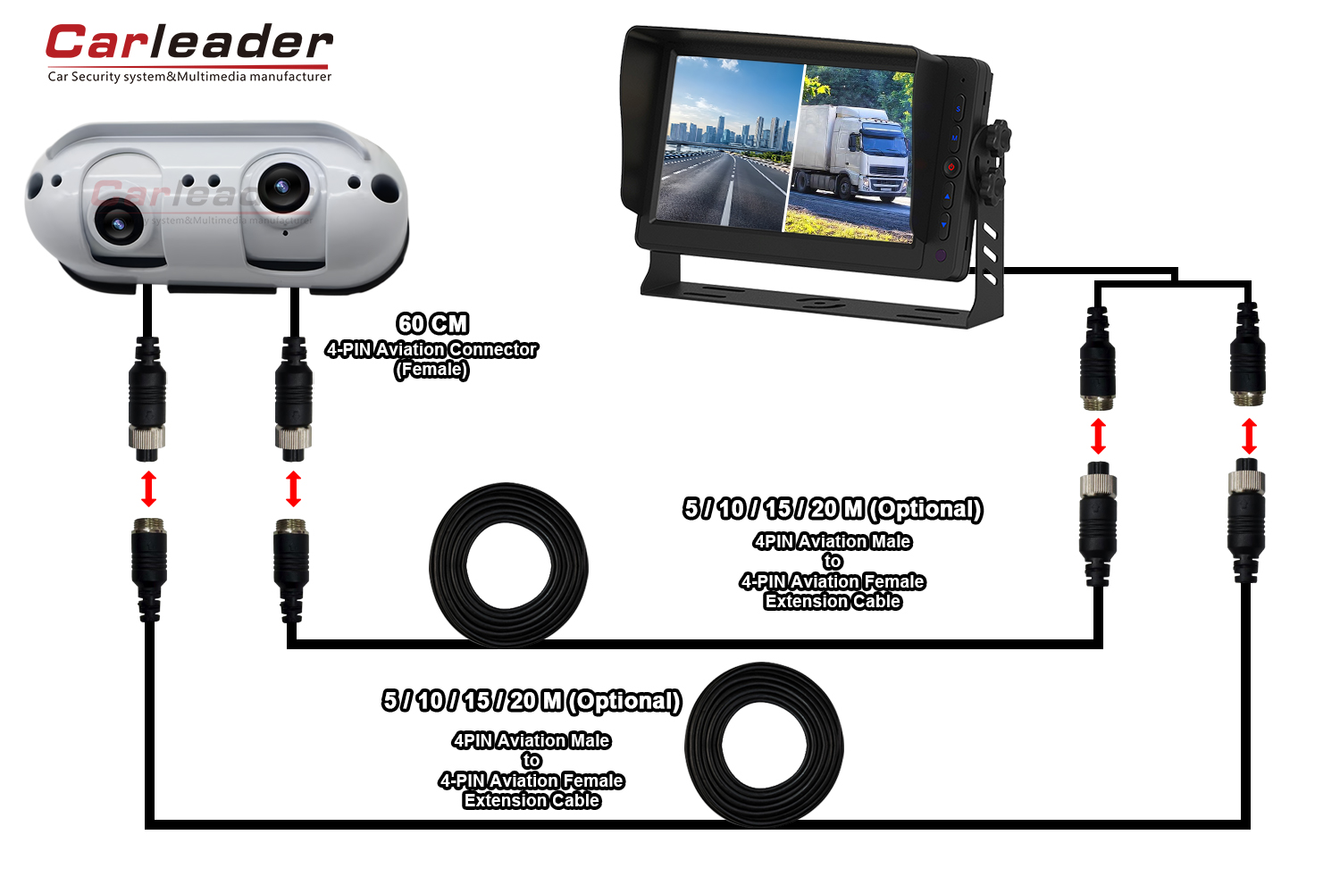 La seconda soluzione prevede due cavi di prolunga, ma la definizione della fotocamera è un connettore aeronautico standard a 4 PIN, purché il cavo di prolunga sia un connettore aeronautico a 4 PIN standard, sarà compatibile con il cavo di prolunga.