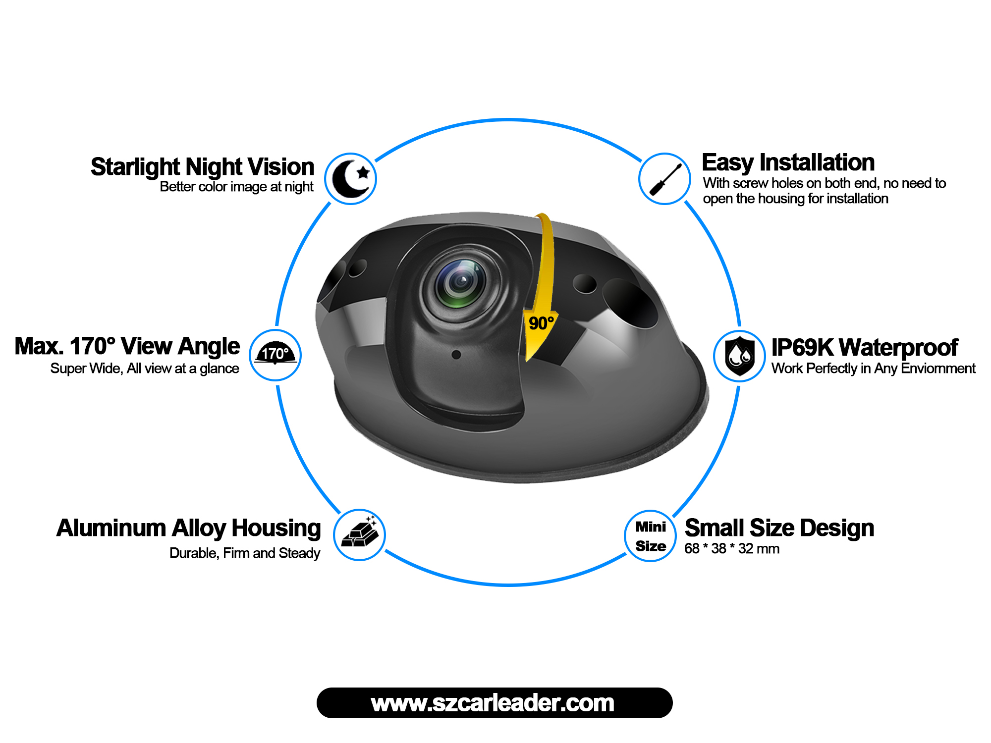 Nel settore automobilistico, CarleaderTelecamera di backup resistente impermeabile AHD da 170 gradi con ampio angolo di visionesono ampiamente utilizzati in camion, autobus, scuolabus, attrezzature tecniche per camper e altri veicoli pesanti. Può essere utilizzata come telecamera per la visione anteriore, laterale e posteriore e può anche essere combinata con MDVR per ottenere registrazione video, monitoraggio remoto, gestione della flotta e altre funzioni